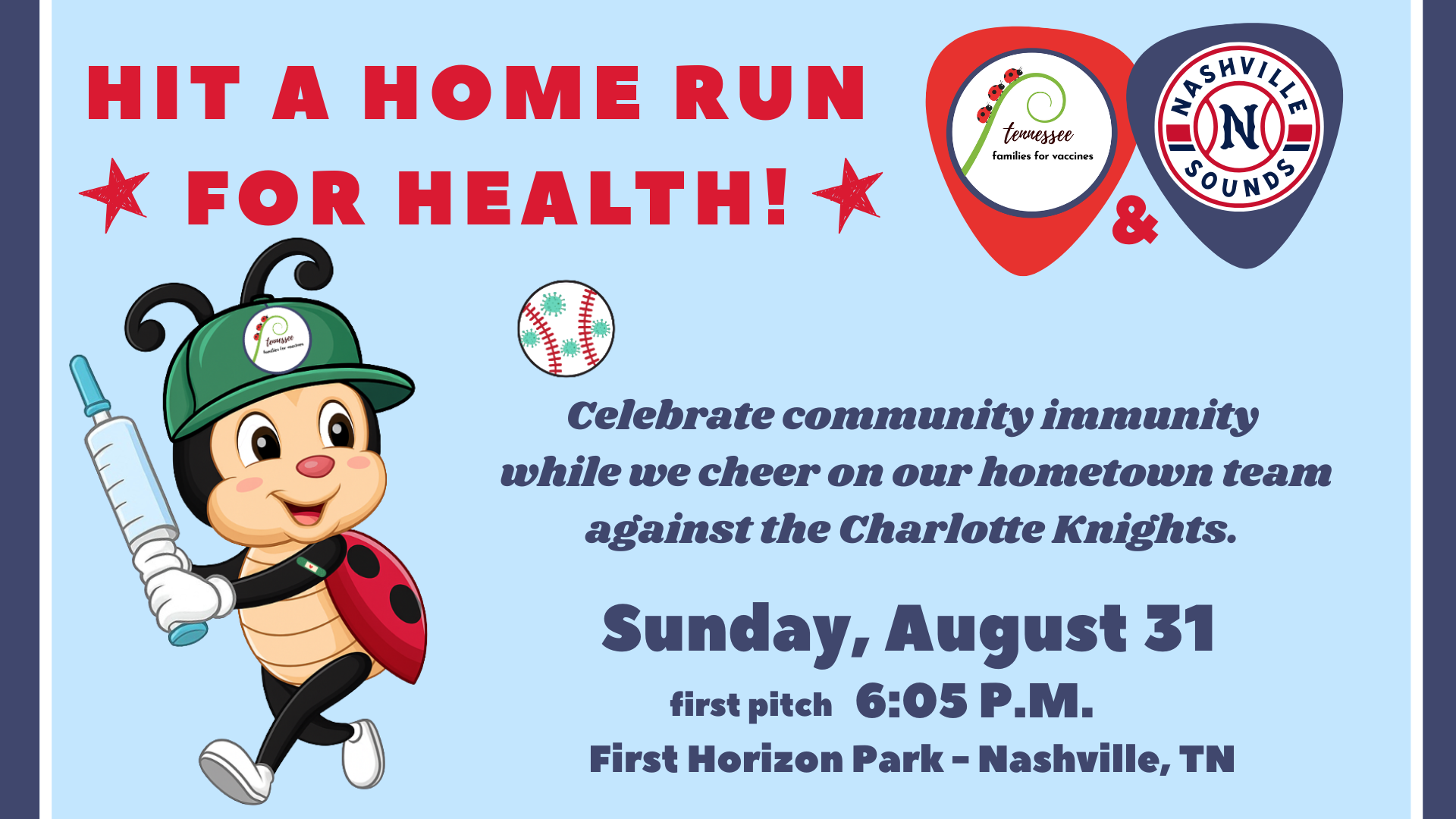 Gates open at 5pm, and the first pitch is scheduled for 6:05pm. We’ll be sharing stories, engaging with families, and highlighting why vaccination is a key part of protecting Tennessee communities.