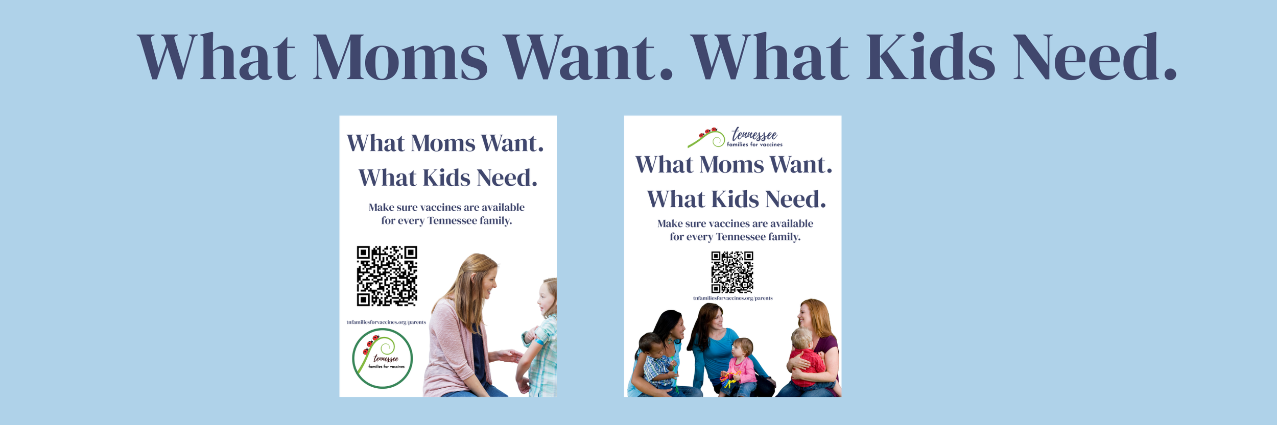 Tennessee Families for Vaccines is excited to announce the What Moms Want. What Kids Need. campaign materials are now available for local clinics, healthcare providers and professionals, and community partners. Fill out the form below to request access to the .png and .pdf files. Printed 8.5 X 11 posters are also available by request.